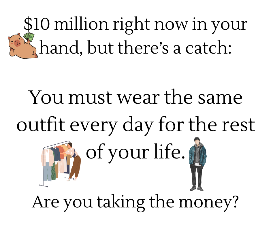 You have $10 million right now, but there’s a catch: You must wear the same outfit every day for the rest of your life. Are you taking the money?