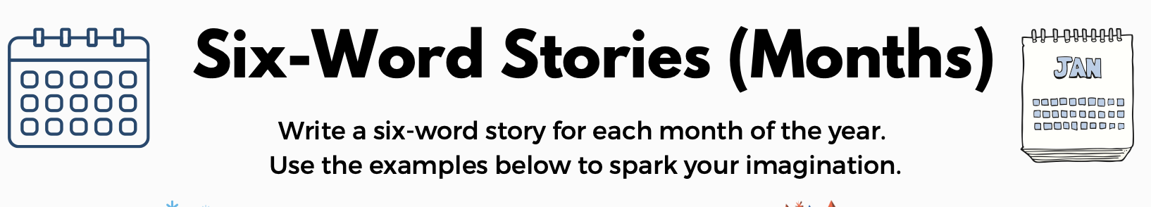 Write a six-word story for each month of the year. Worksheet Here: Donate Here: