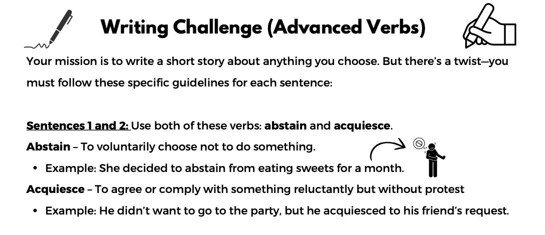 Read MoreWriting Challenge (Advanced Verbs)