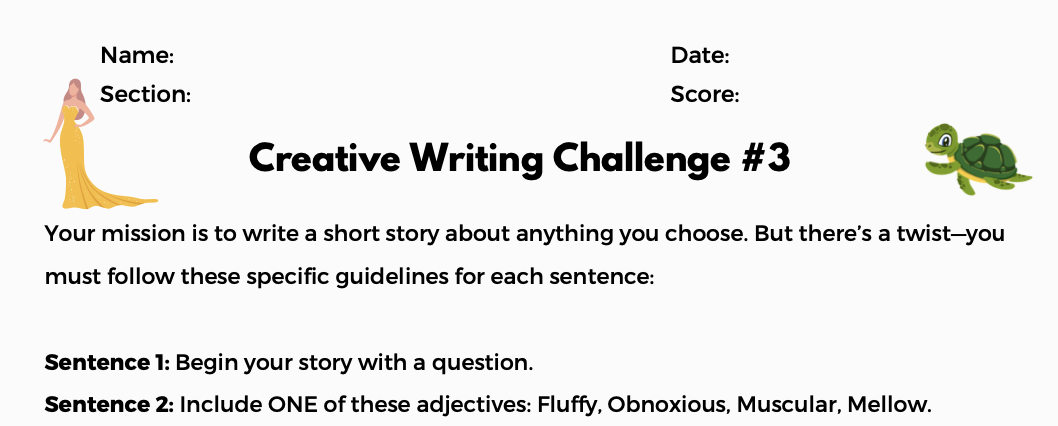 Here is another fun writing challenge for students. I hope it helps! More writing challenges here: Donate Here: