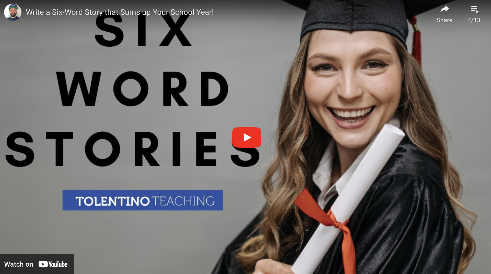 Here are two writing prompts I use before winter break. I hope they help! 1) Write a Six-Word Story that Sums up Your School Year! Worksheet: 2) What is Your Favorite Memory From the Year? Worksheet More activities here:
