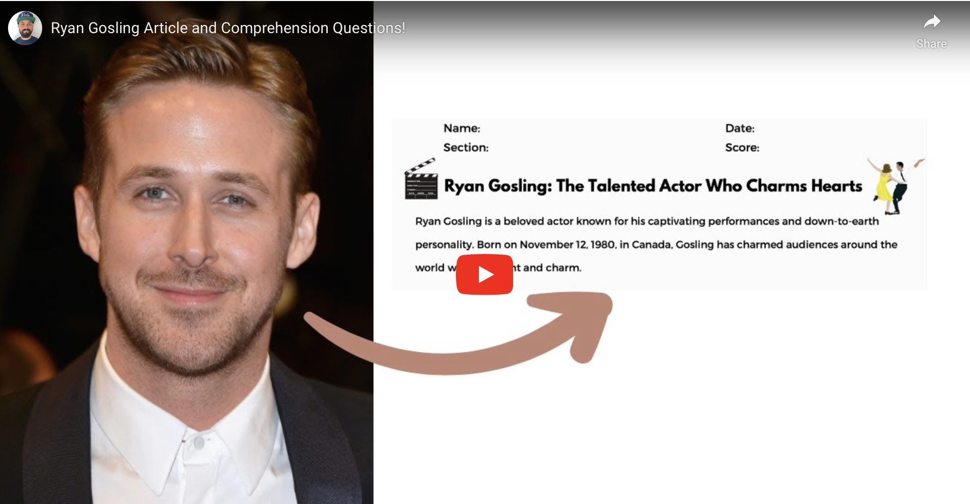 Read MoreRyan Gosling Article and Comprehension Questions!