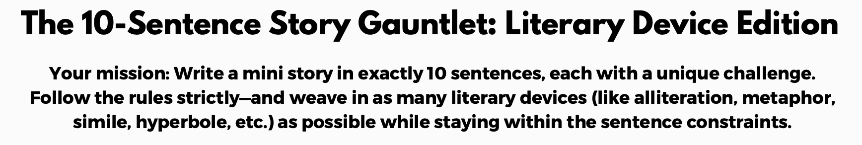 Read MoreThe 10-Sentence Story Gauntlet: Literary Device Edition!
