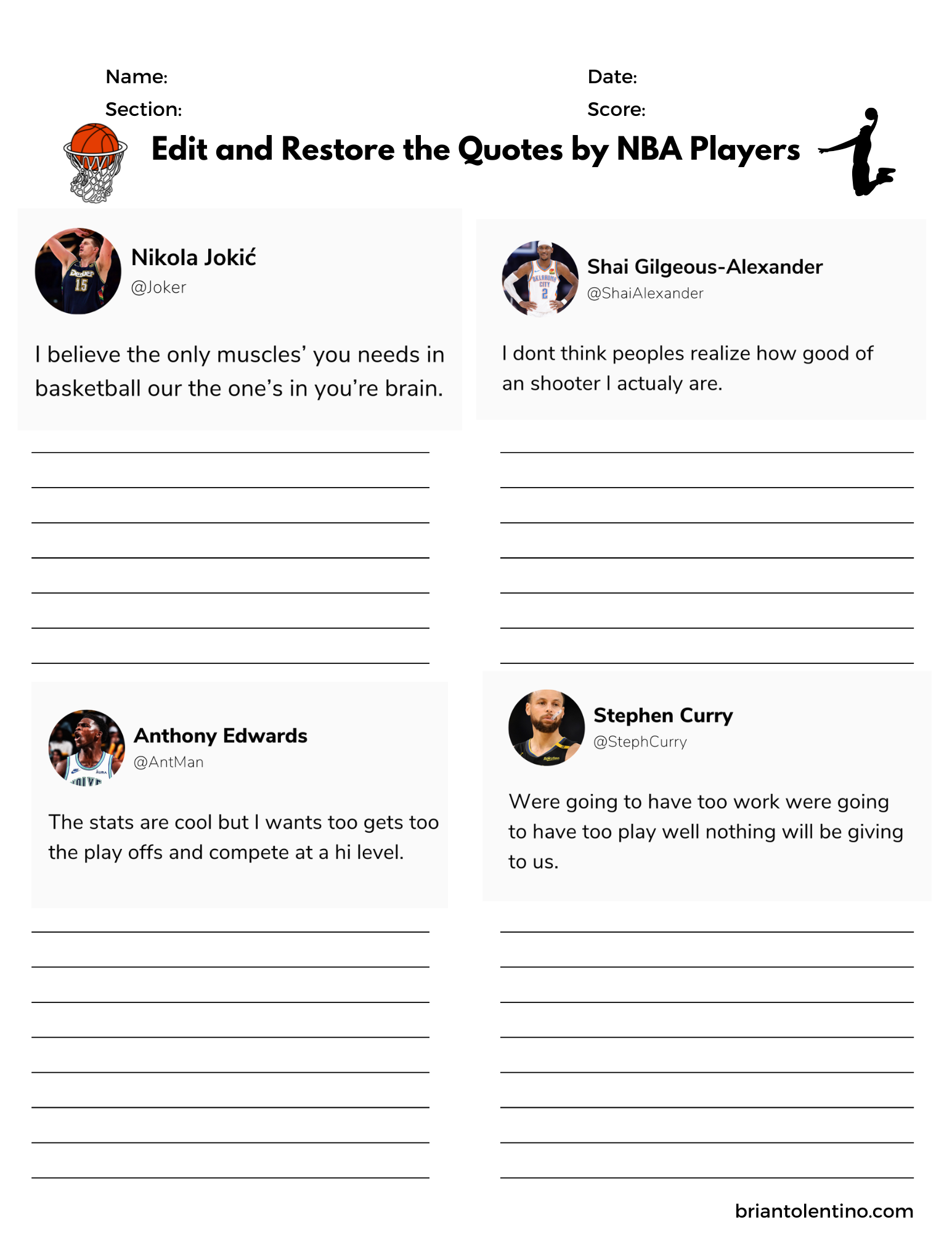 Can your students fix the mistakes in this paragraph? I like to turn this activity into an editing contest. The group that restores the paragraph closest to its original form wins! More Lebron James Activities: Donate here: