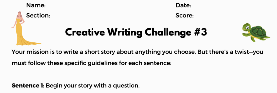 Here is another creative writing challenge. I hope it helps! More challenges here: Donate here: