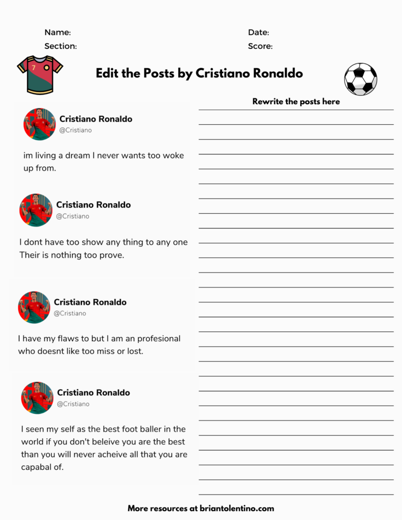 The following worksheet has been uploaded to my EDITING ACTIVITIES on TPT. I will be uploading many exclusive resources here. You can purchase access to these resources by clicking on the link: