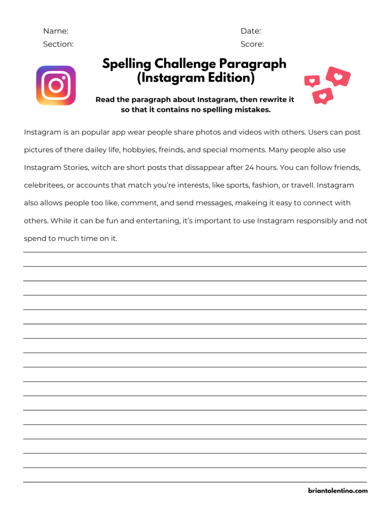 Strong writers notice the small things: spelling, punctuation, capitalization, and grammar. This challenge will test how focused and “locked-in” you are. Worksheet:
