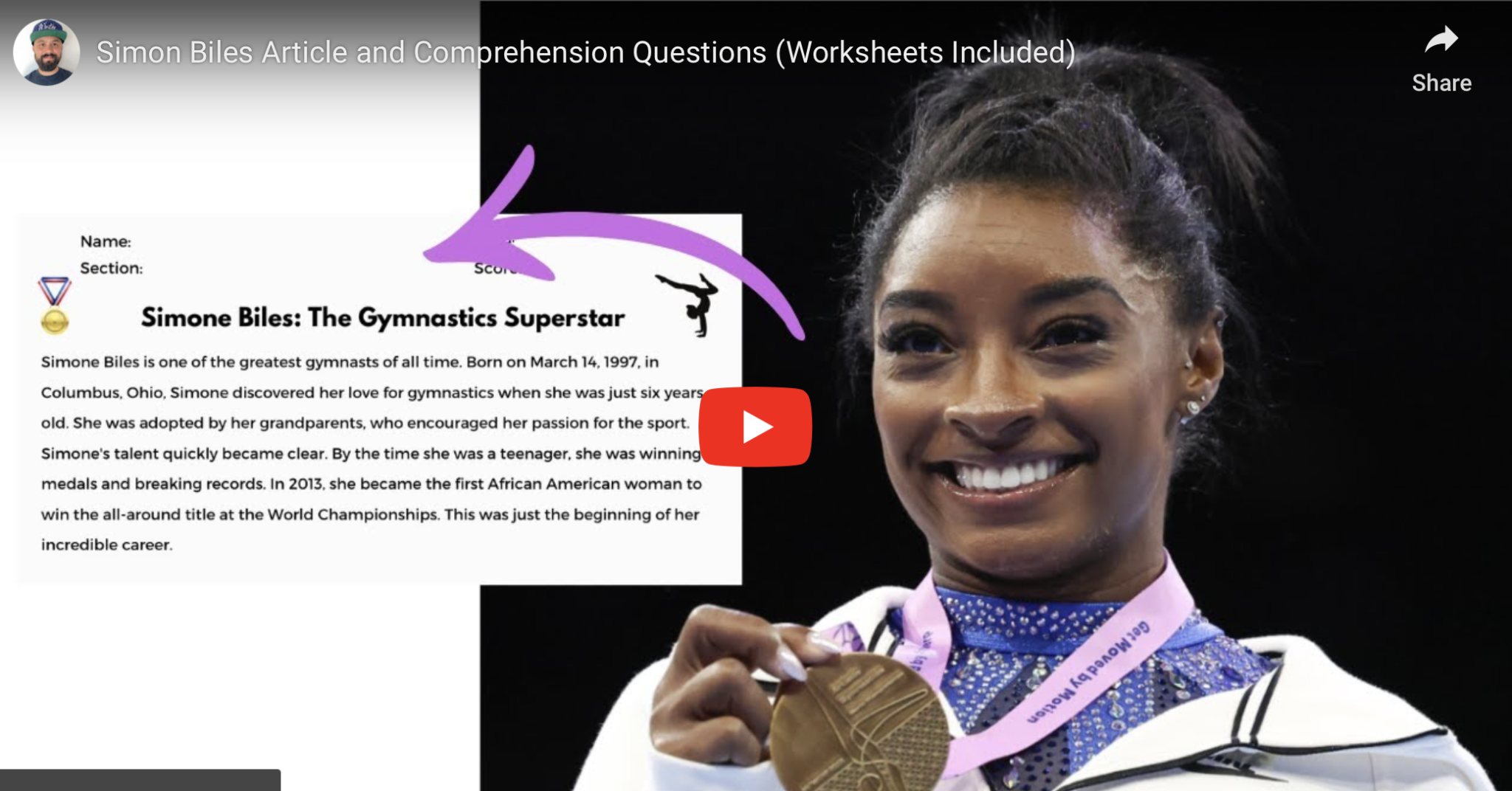Respond to a Quote by Simone Biles: Edit and Restore the Quotes by Simone Biles Worksheet: *These quotes have been intentionally altered for editing purposes. Students need to RESTORE the quotes. Edit and Restore the Quotes by Simon Biles Video: This activity is designed to projected on the wall or on a smartboard. I love having students edit the quotes in groups. Simon Biles Article and Comprehension Questions: