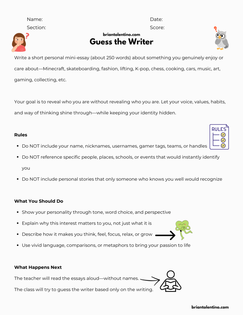 For this task, you’re going to have an argument with a classmate — but there’s a twist: you won’t be speaking at all. Instead, you will argue on paper. You’ll share your ideas, respond to your partner, and try to